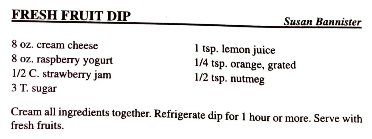 Cream all ingredients together. Refrigerate dip for 1 hour or more. Serve with fresh fruits.