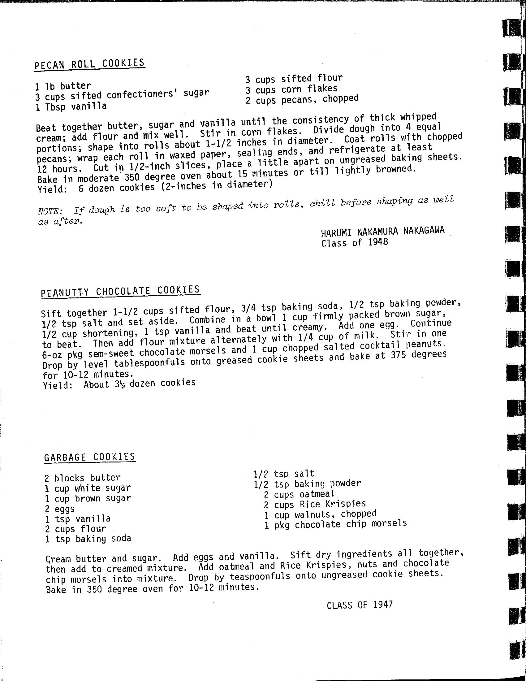 1 cup butter2 cups brown sugar2 eggs4 cups sifted flour1/2 tsp. salt1/4 tsp. cinnamon1 tsp. soda1/2 cup nut meats1/2 cup pitted dates1/2 cup maraschino cherries Cream butter and sugar together; add eggs. Sift flour, salt, cinnamon and soda together. Add 1/2 cup of flour mixture to the fruits and nuts. Add the dry ingredients to…