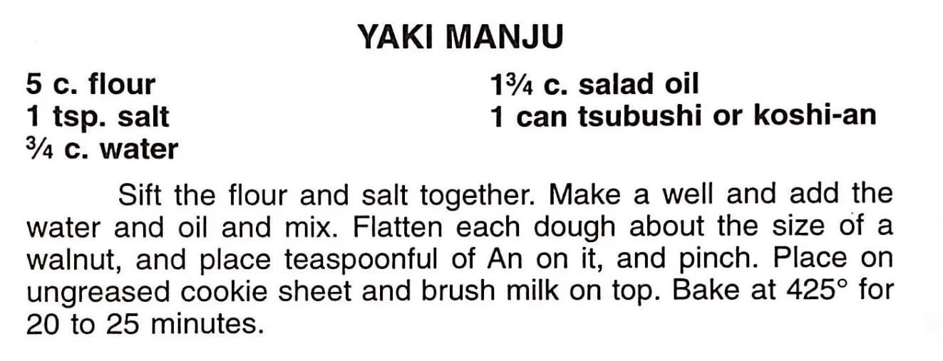 Sift the flour and salt together. Make a well and add the water and oil and mix. Flatten each dough about the size of a walnut, and place teaspoonful of An on it, and pinch. Place on ungreased cookie sheet and brush milk on top. Bake at 425 F. for 20 to 25 minutes.