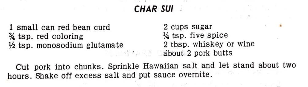 Cut pork into chunks. Sprinkle Hawaiian salt and let stand about two hours. Shake off excess salt and put sauce overnite.