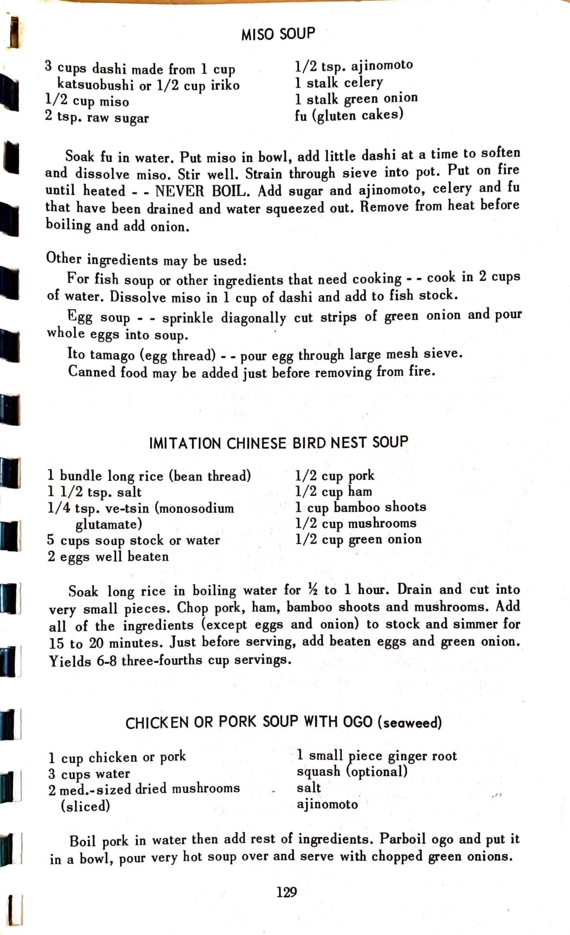 (Fruit, Bean and Kanten Dessert) 1 cup saru-endo (brown peas) or green peas or azuki may be used. Cook with care so as not to break the skin. Simmer long instead of boiling. 1 red kanten, 1-3/4 cups water, 1 tbsp. sugar. Boil together and pour into flat pan. When jelled, dice into 1/2 inch…