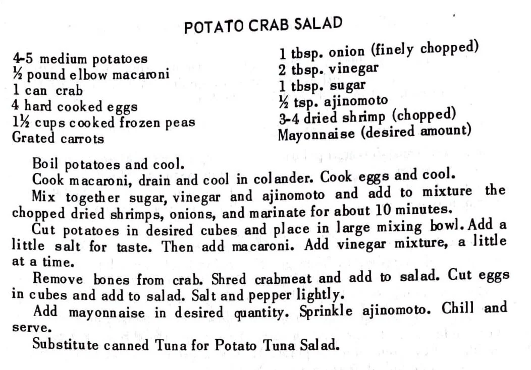 1 pkg. soba noodles (Shirakiku Zaru Soba) 1/2 round onion, thinly sliced 1 tub Ocean Salad imitation crab tomato, thinly sliced horenso or baby spinach SAUCE: 1/2 c. sugar 2 tsp. salt 1 tsp. pepper 1/2 c. oil or less 1 Tbsp. sesame oil 1/3 c. Mitsukan vinegar (or any Japanese vinegar) dash of shoyu…