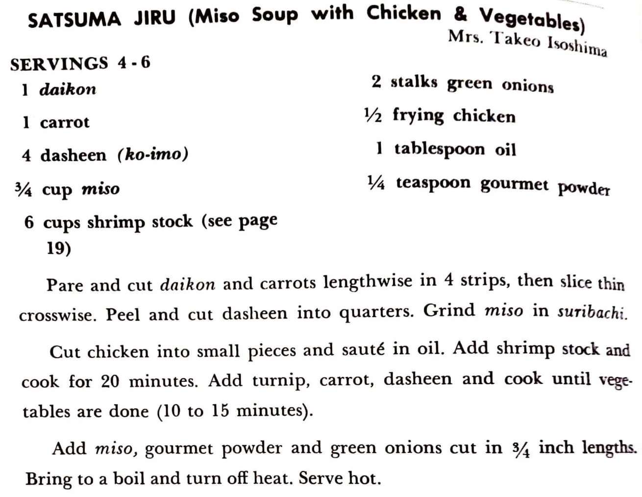 Satsuma Jiru (Miso Soup With Chicken & Vegetables)