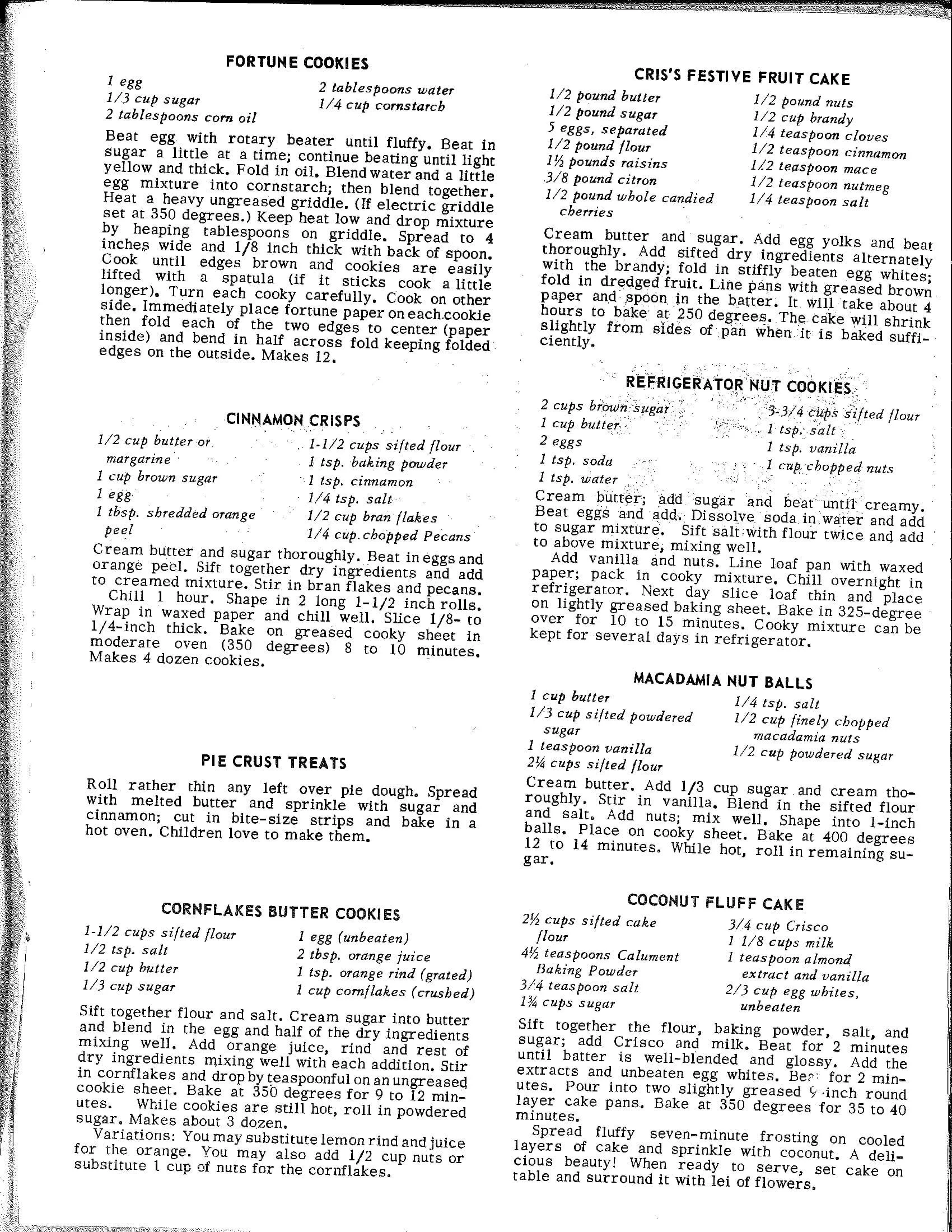3/4 cup shortening1 cup sugar2 eggs unbeaten2 tsp. vanilla3 cups flour3 tsp. baking powder1/2 tsp. salt Cream shortening. add sugar and eggs. Add remaining ingredients and drop on greased cookie sheet. Press top with a floured fork making a criss-cross pattern or flatten with a tumbler. Bake 15 minutes in a moderate oven 350 F.