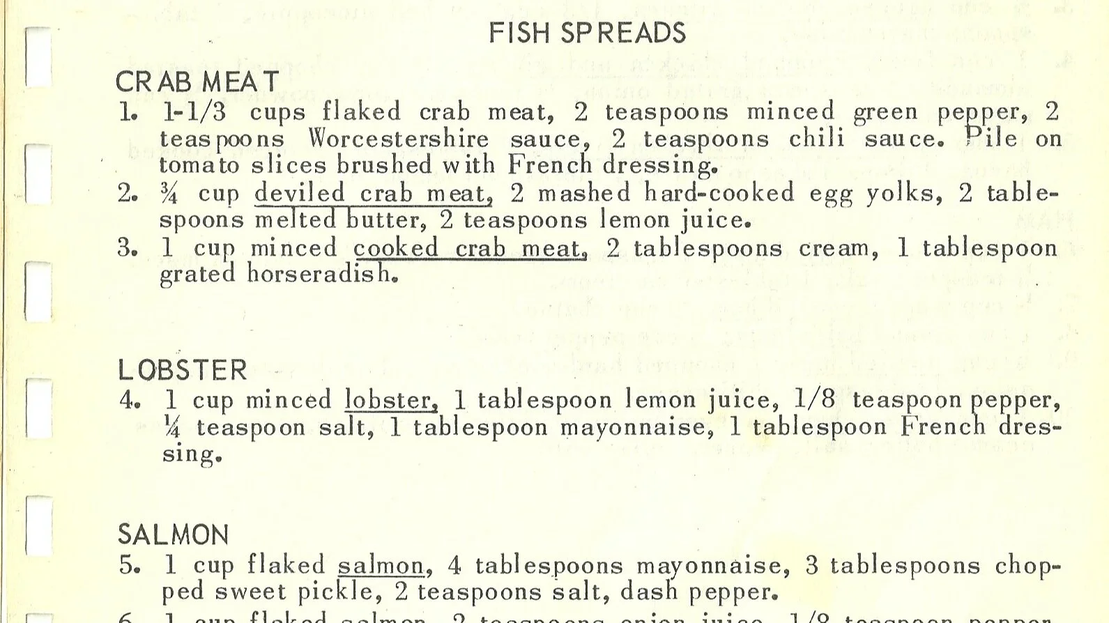 1/2 cup flaked salmon, 1/2 cup deviled ham, enough mayonnaise to bind mixture.