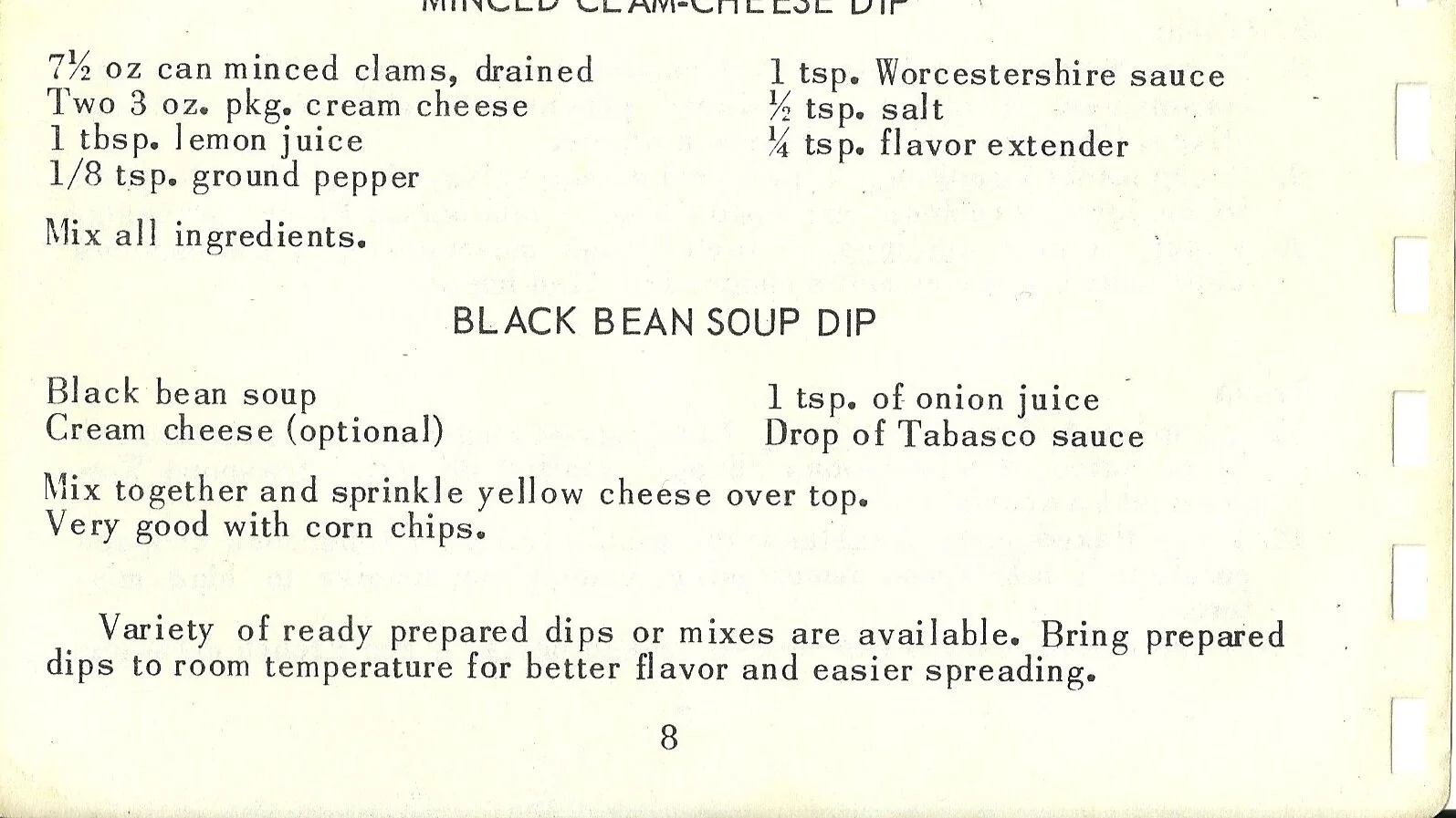 Variety of ready prepared dips or mixes are available. Bring prepared dips to room temperature for better flavor and easier spreading.