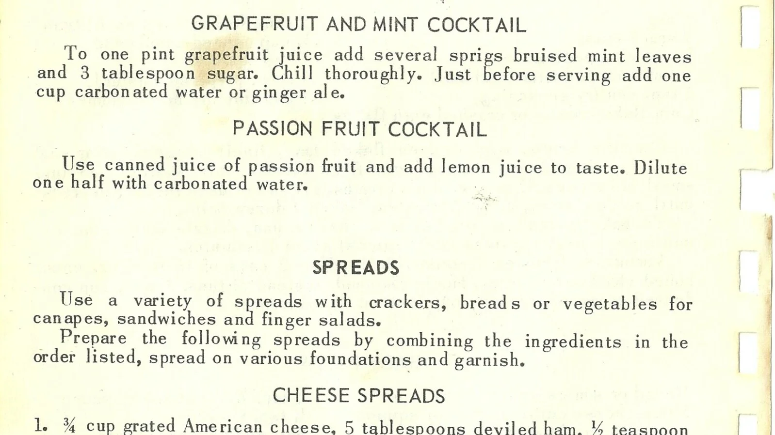 To one pint grapefruit juice add several sprigs bruised mint leaves and 3 tablespoon sugar. Chill thoroughly. Just before serving add one cup carbonated water or ginger ale.