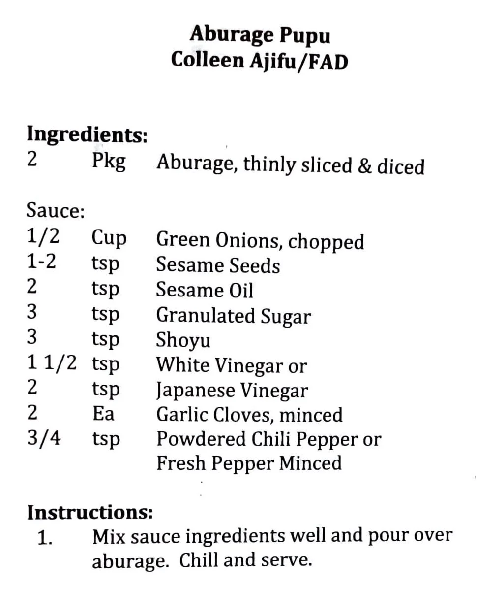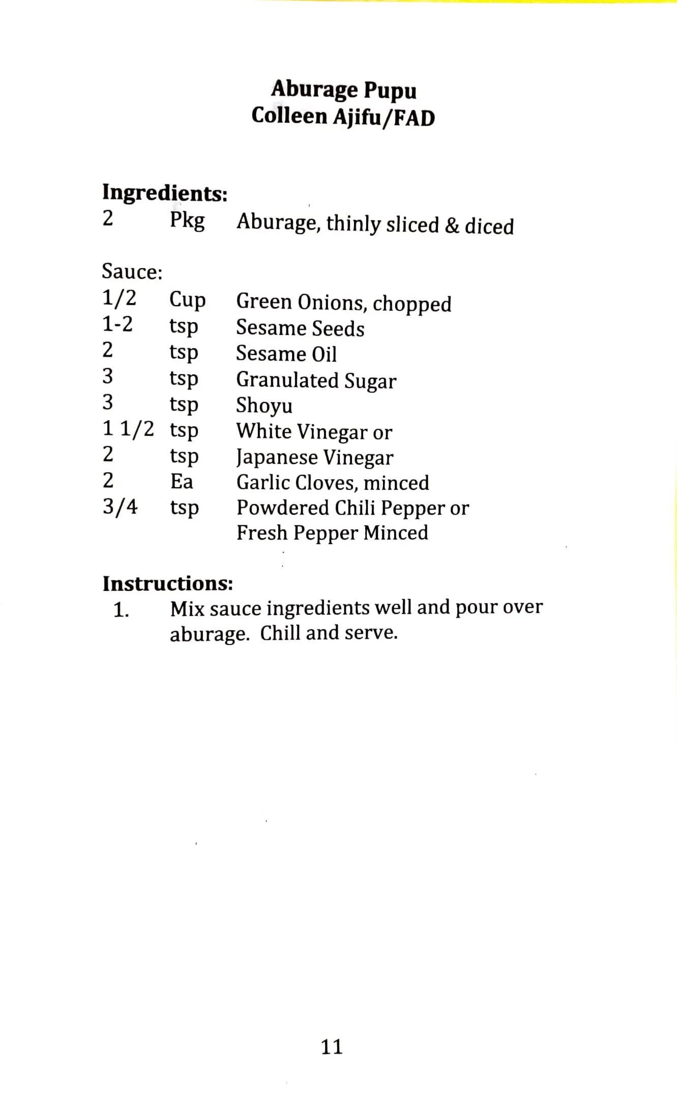 Cut Abalone (canned) into small squares. Spear with toothpicks and serve with Hot Mustard and Shoyu Sauce.
