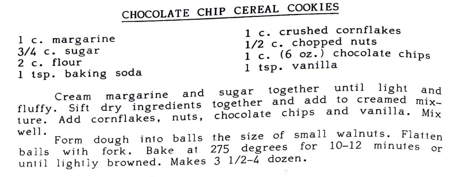 (Makes 5 doz. cookies) 3/4 cup shortening1 cup brown sugar1/2 cup granulated sugar1 egg1/ 4 cup water1 tsp. vanilla Place in mixing bowl; beat thoroughly. 1 cup sifted enriched flour1 tsp. salt1/2 tsp. soda Sift together and add to above mixture and mix well. Blend in 3 cups oats, uncooked. Drop by teaspoon onto greased…