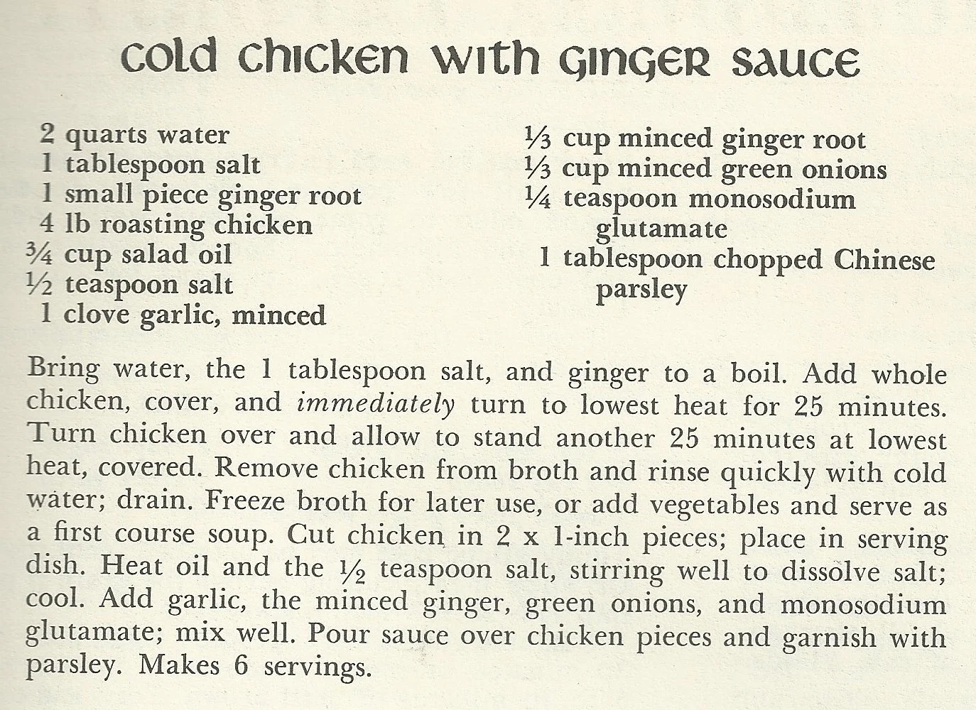 Cold Chicken with Ginger Sauce