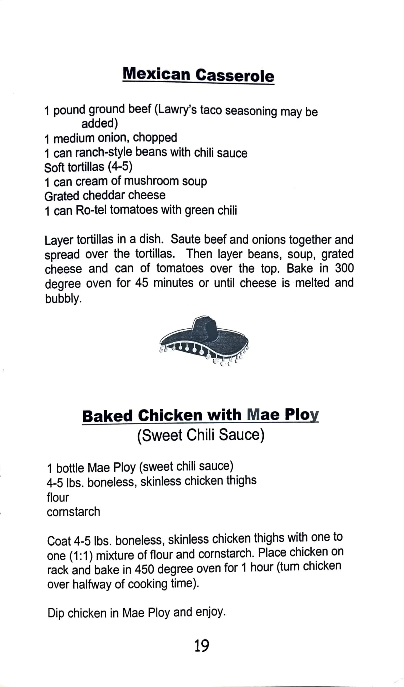 4# ready to cook frying chicken3/4 cup flour1 tsp. saltDash of pepper1 can Cream of Mushroom Soup Dip chicken into flour seasoned with salt and pepper. Brown in hot fat add cream of mushroom soup and cook in moderate oven 350 F until chicken is done.