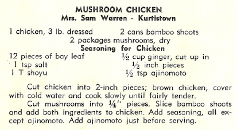 2 pounds lean pork1 cup shoyu1/2 tsp. red coloring1/2 cup sugar1 pc. ginger (about 1″ cube) crushed Combine shoyu, coloring and sugar in pot. Cook for n while and cool. Cut pork in four pieces and soak in sauce. Steam for five hours. Brown in oven or saucepan for 20 minutes.