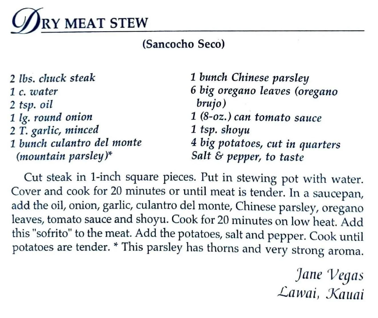 Dry Meat Stew (Sancocho Seco)