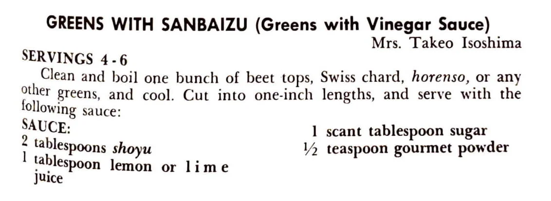 Greens with Sanbaizu (Greens with Vinegar Sauce)