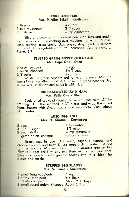 1 lb. pork sliced1 cake tofuGreen onions1 clove garlic (crushed)1/4 tsp. aJinomoto1 medium size carrot Marinate pork in 1 tsp. shoyu and 1 tsp. sugar. Cut tofu in half inch cube and drain in colander. Stir fry garlic in 2 tsp. oil for 1 minute. Add pork and stir-fry for 3 minutes. Add carrots, sliced…