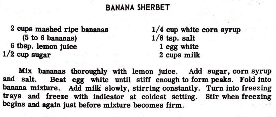 Mix bananas thoroughly with lemon juice. Add sugar, corn syrup and salt. Beat egg white until stiff enough to form peaks. Fold into banana mixture. Add milk slowly, stirring constantly. Turn into freezing trays and freeze with indicator at coldest setting. Stir when freezing begins and again just before mixture becomes firm.