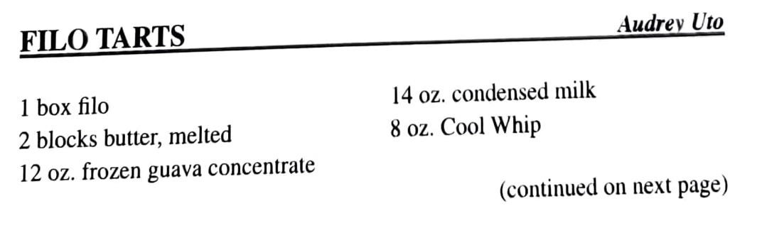 4 eggs (slightly beaten)2/3 cup sugar1/2 tsp. salt2-2/3 cup scalded milk Mix the above ingredients and pour in a pie shell. Bake In 450 F oven until crust is slightly brown. Then lower heat to 325 F and continue baking. baking time is 30 min. In all. Do not worry even if the custard looks…