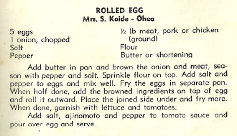 4 cups shoyu1/3 cup vinegar2-1/4 to 2-1/2 cups brown sugar3 tbsp. saltajinomoto, ginger, garlic Combine the above ingredients. Put pork into the mixture and cook for about 1 to 1-1/2 hours. Medium heat until mixture boils, then on low until pork ls cooked.
