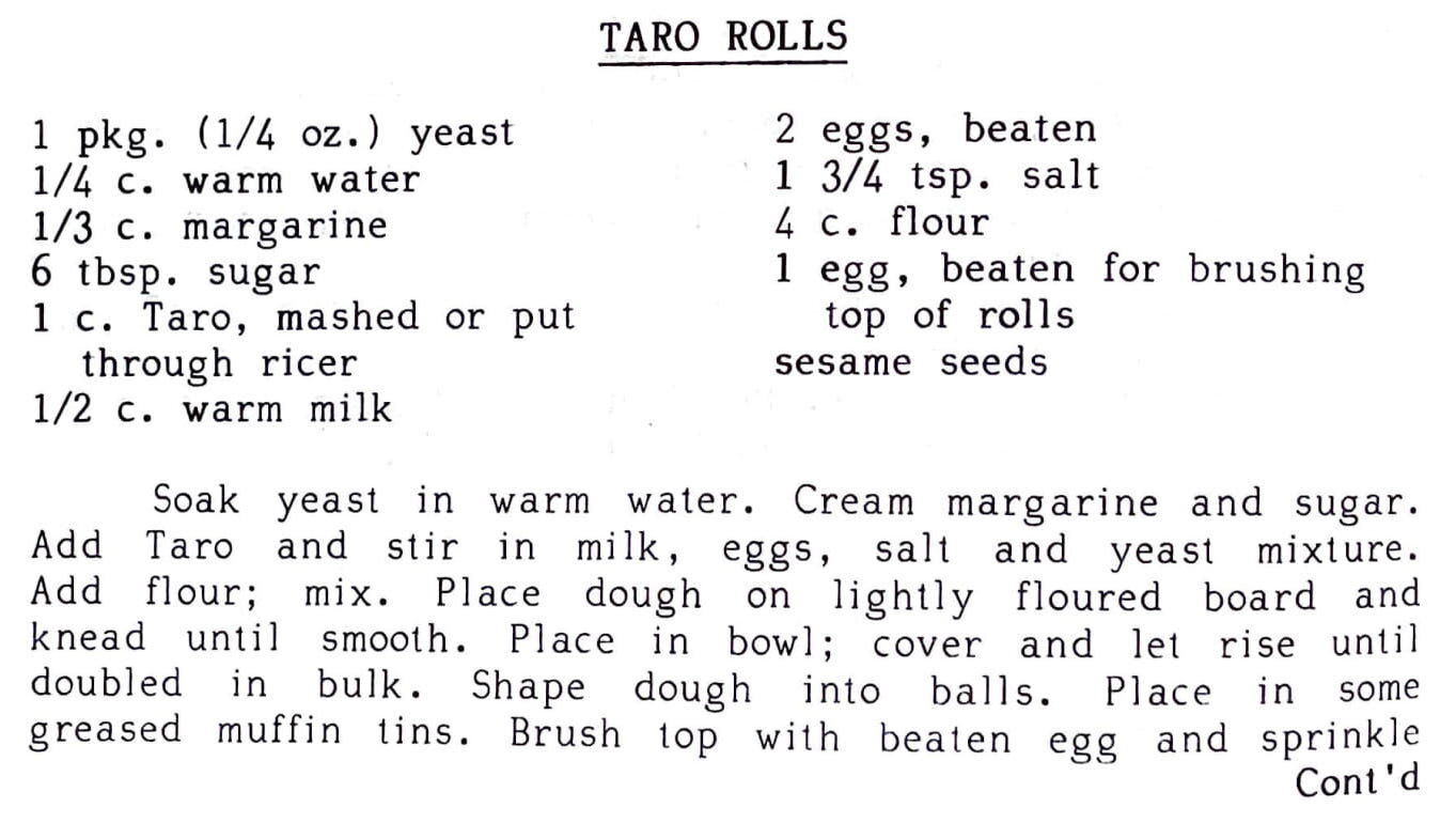 1 c. Taro, mashed or put through ricer