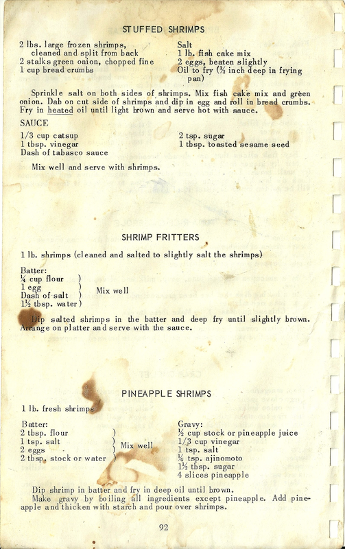 2 lbs. box of chicken thighs Sauce:2 tbsp. red bean curd, mashed1/2 cup sugar1/2 cup shoyu3 tbsp. sherry1 tbsp. salt1 tbsp. Chinese five spices1 tsp. red food coloring Combine ingredients for sauce and marinate chicken thighs 4 to 5 hours, turning several times. Broil for 30 to 45 minutes until nicely browned and tender. Turn…