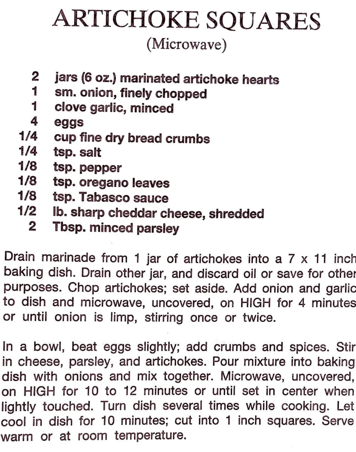 Artichoke Squares