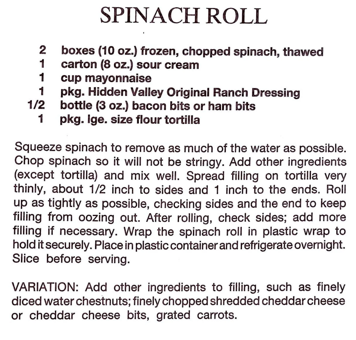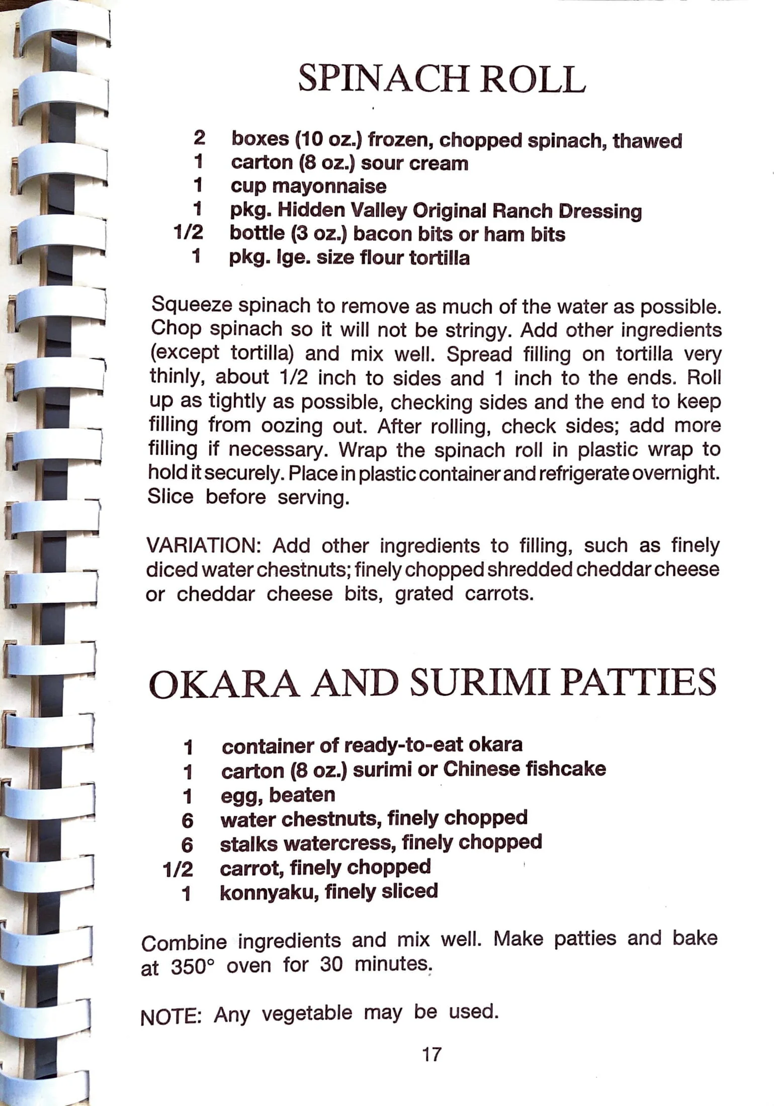 12 Pi (should be covered with wet cloth) 1-1/2 c. shredded bamboo shoots 1/2 c. chives, cut 1” 1/2 c. green onion, cut 1” 1/2 c. mushroom strips (dried ones soaked in water & water squeezed out) 1/2 c. char siu strips Combine ingredients and place 2 tbsp. of ingredients in the Pi. Fold and…