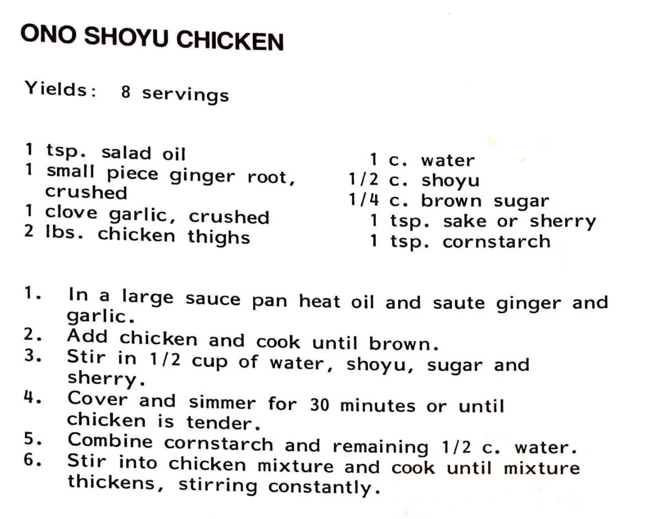 Ono Shoyu Chicken
