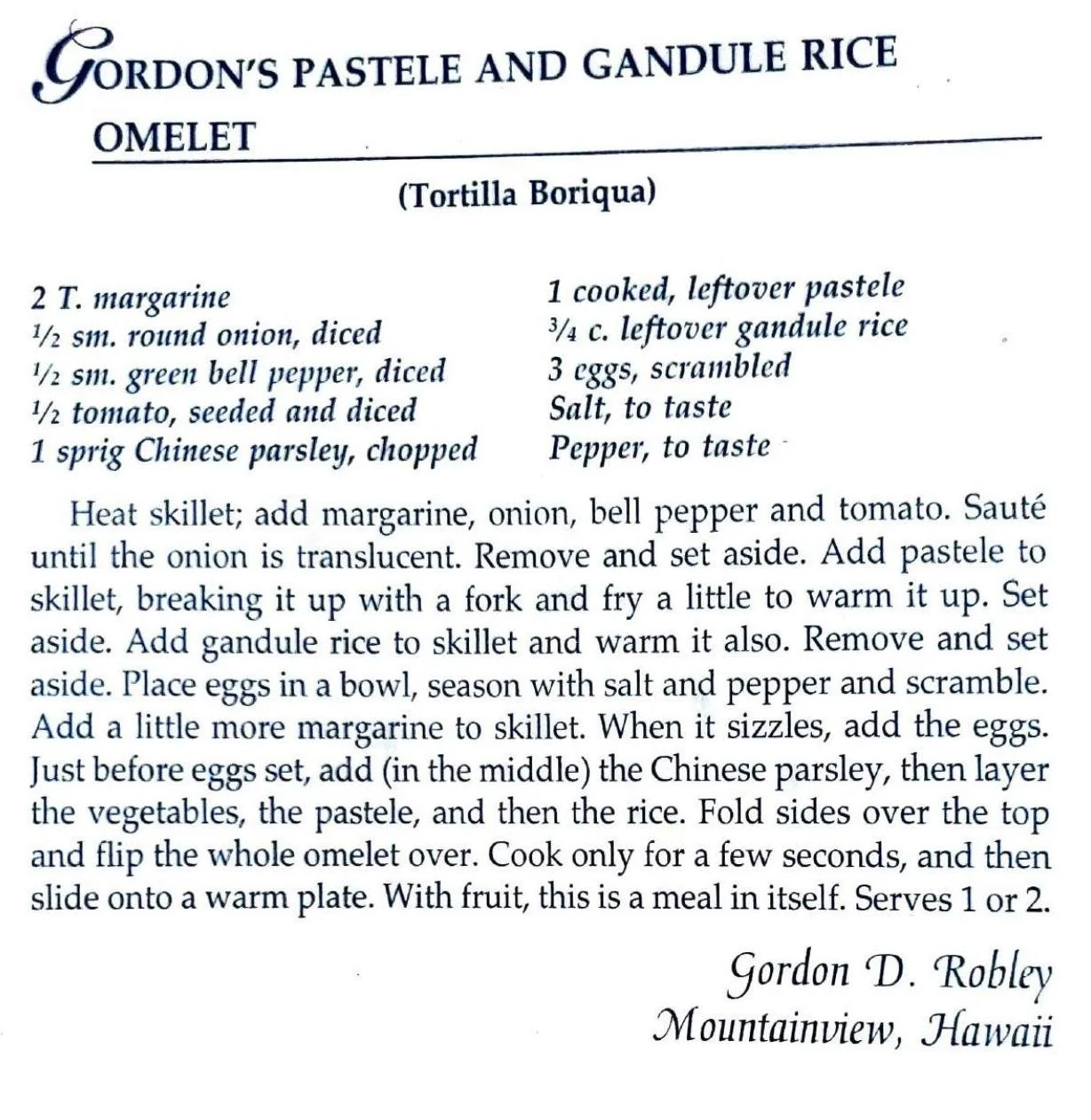 Gordon’s Pastele and Gandule Rice Omelet (Tortilla Boriqua)