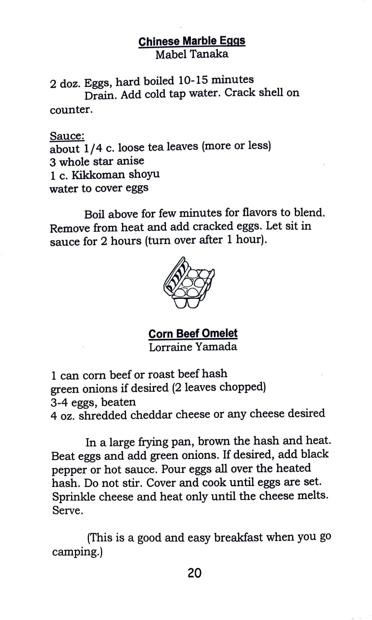 1 cup beans1 cup sweet pork cut in strips1 tsp. shoyu6 water chestnuts1 cup beansprouts2 eggs2 stalk green onions1/2 c ham Fry ham, sweet pork. Add beans and water chestnuts. Add shoyu, salt and beansprouts. Pour into a dish and divide into 2 parts. Scramble eggs and fry in a hot pan and pour ingredients…
