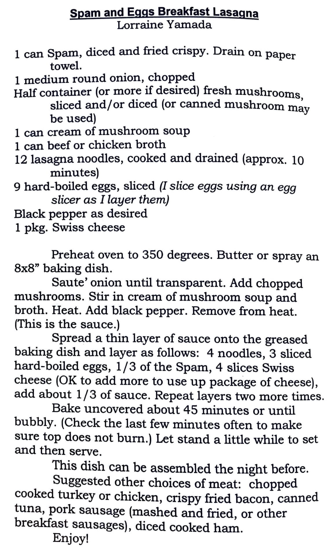 Spam and Eggs Breakfast Lasagna