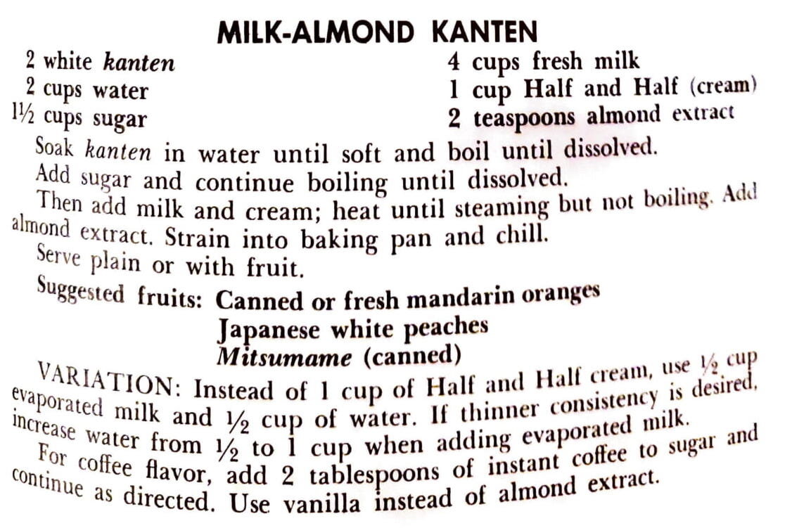 3 pkgs or 1 – 2 lb. pkg. mochiko 4 cups water Wrap mixture in wet dish towel. Steam for 1 hour and let it rise like yeast dough with bubbles. 3 cups granulated sugar 3/4 cup water 1/2 tsp. red/green/or orange coloing Boil until sugar is dissolved. Just before above mixture is ready. Turn…