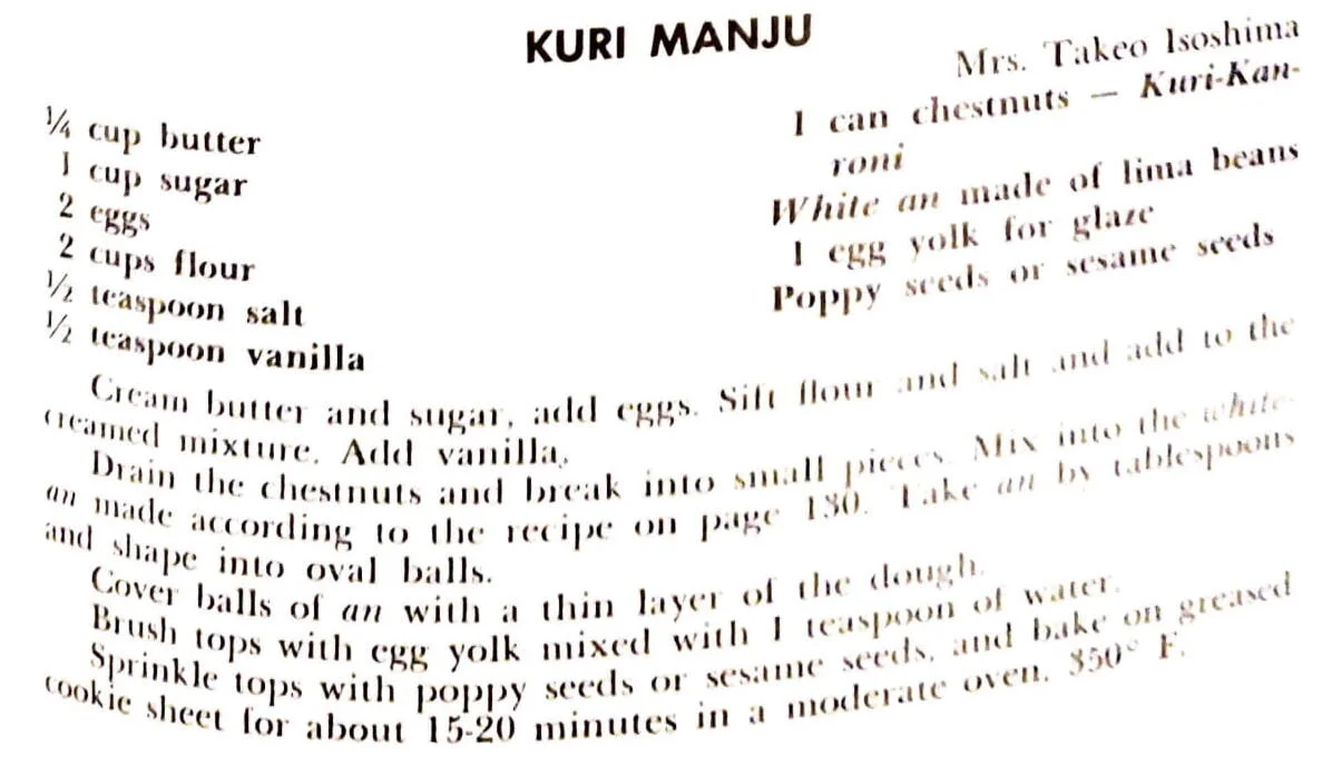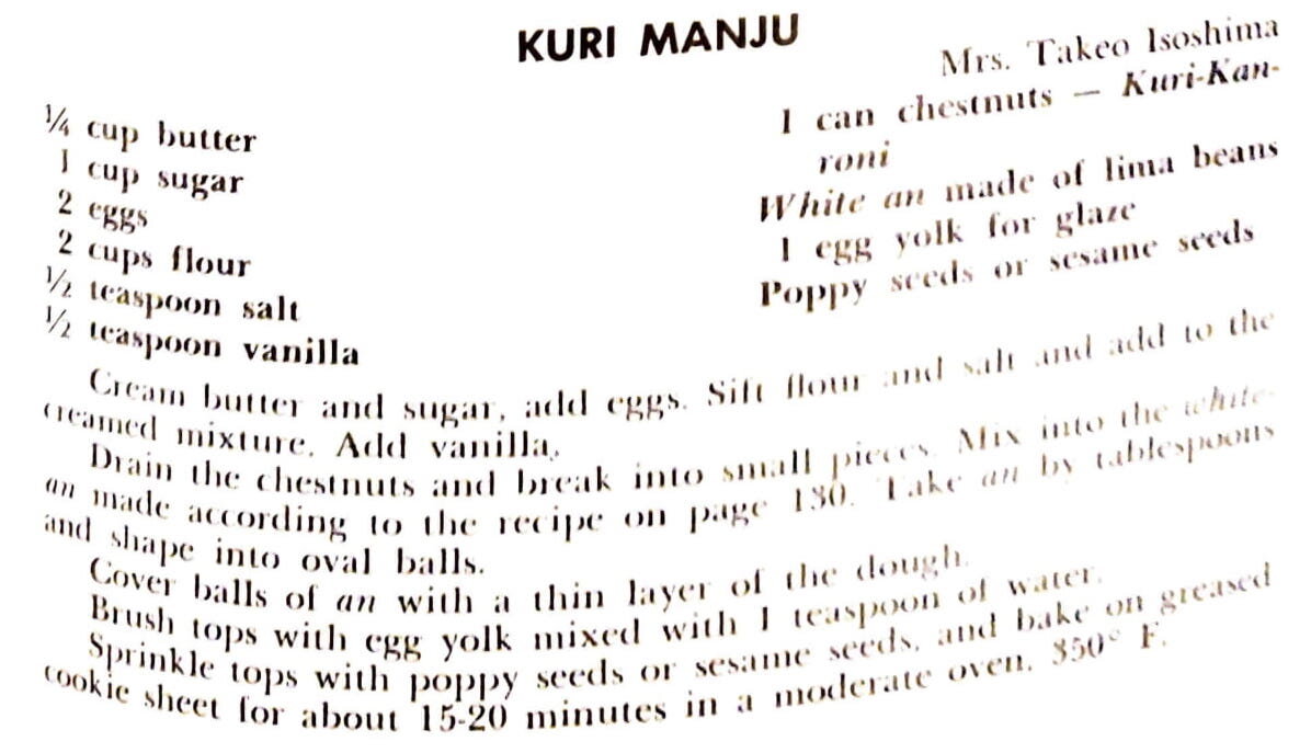 1 c. sugar 1 box mochiko (3-1/2 c.), sifted 2-1/2 c. yomogi water Kinako For Yomogi Water: 1 handful young shoots of yomogi 2 c. water 1 tsp. baking soda Boil together until tender. Blend or grind. Prepare easy mochi. Spread on Kinako. Break off pieces and fill with An. Makes approximately 36 An filled…