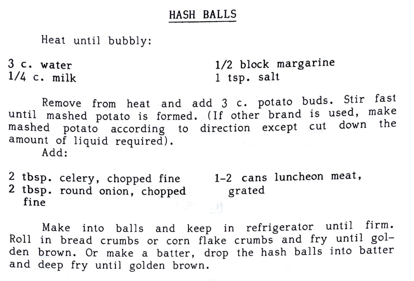1 pkg. won ton pi 1/2 lb. hamburger 1/4 c. green onion, sliced thin 1/2 of an egg, beaten salt and pepper 1/4 tsp. prepared mustard Combine all ingredients except the won ton pi. Place a teaspoonful of mixture in the center of the won ton squares. Wet the edges and seal the filling in….