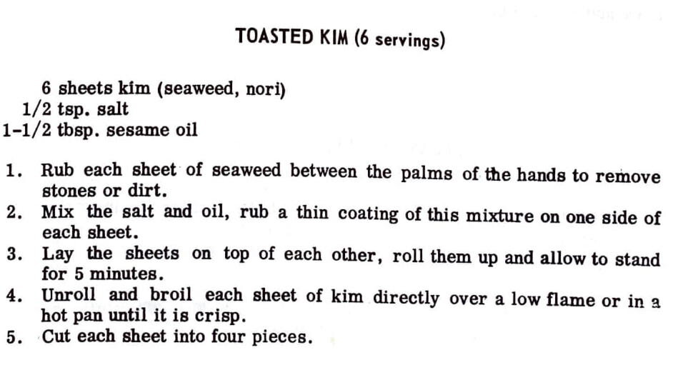 4. Unroll and broil each sheet of kim directly over a low flame or in hot pan until it is crisp.