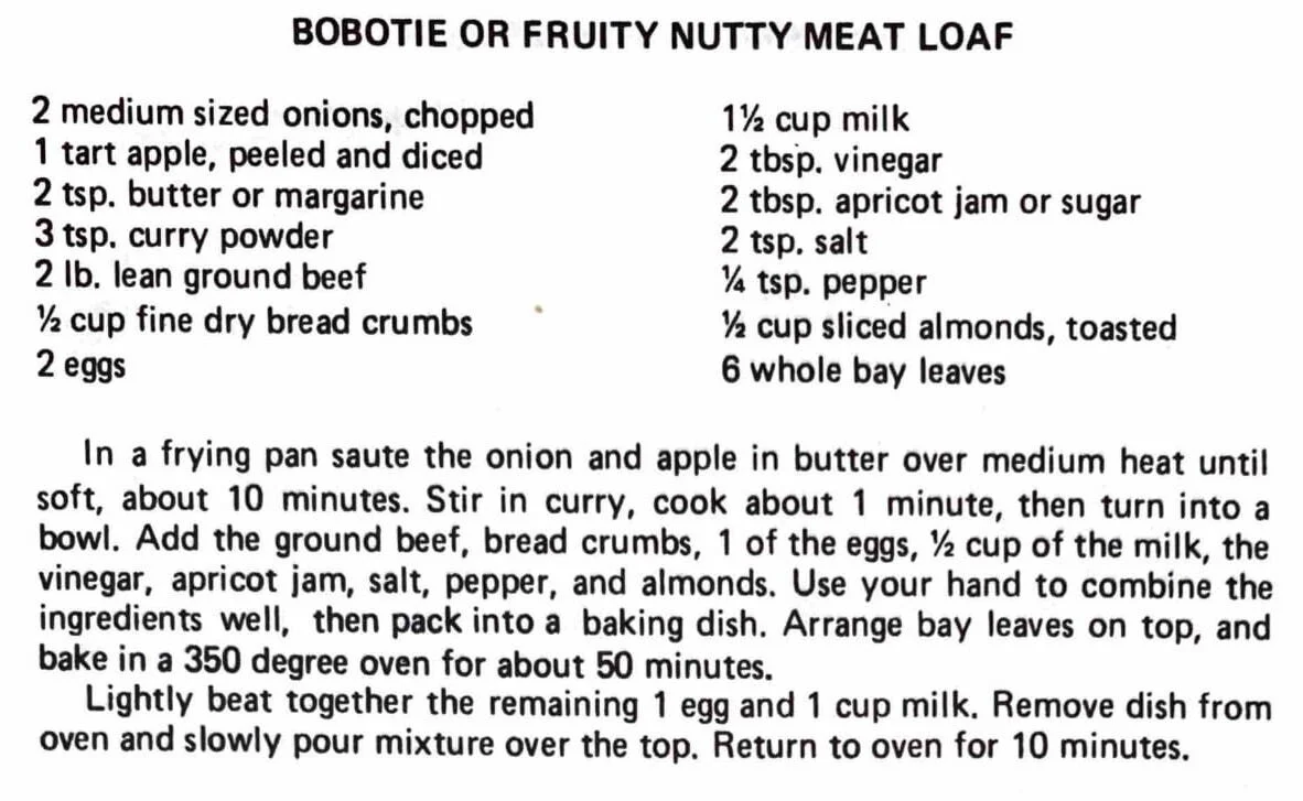 Bobotie or Fruity Nutty Meat Loaf