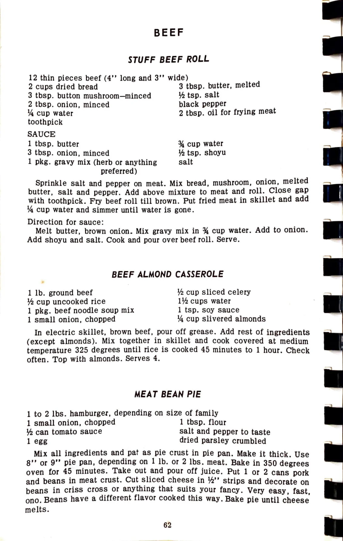 1 lb. hamburger4 slices bacon, diced1/2 Portuguese sausage, sliced1 clove garlic, minced1 medium onion, diced1 can kidney beans, undrained1 can condensed tomato soup1 tbsp. chili pepper1 tsp. curry powder1 tbsp. brown sugarSalt, to tastePepper, to taste1-2 inch ginger, sliced 1. Brown hamburger, bacon, sausage, garlic and onion together.2. Add remaining ingredients and simmer for 30…