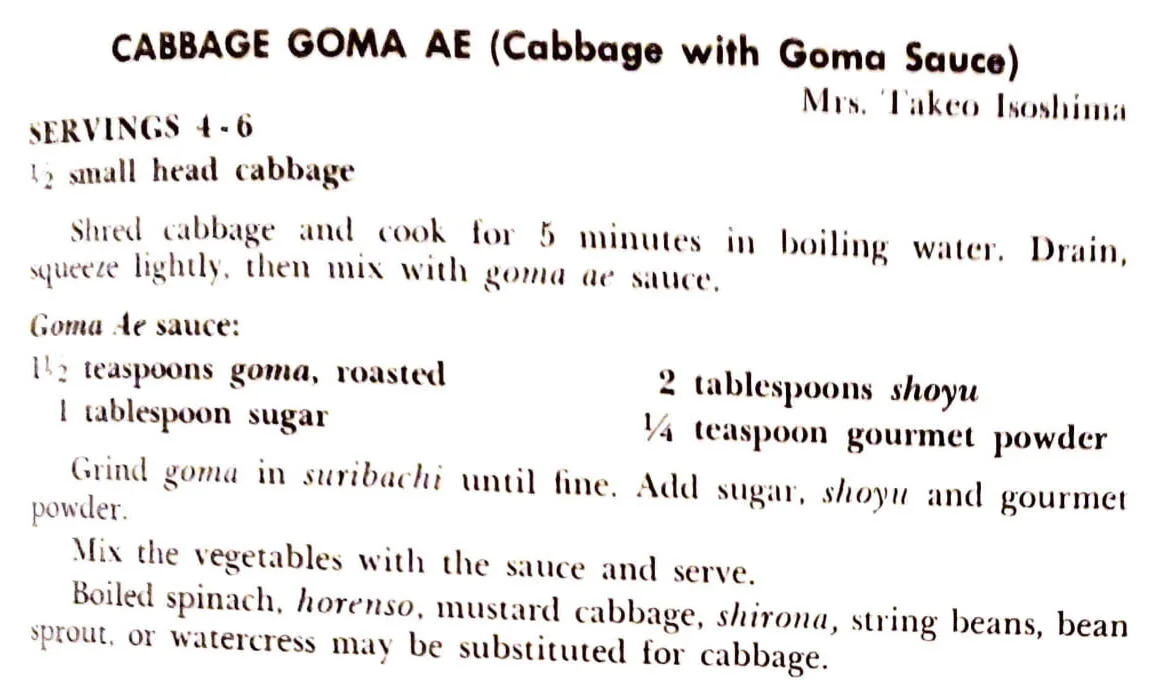 Cabbage Goma Ae (Cabbage with Goma Sauce)