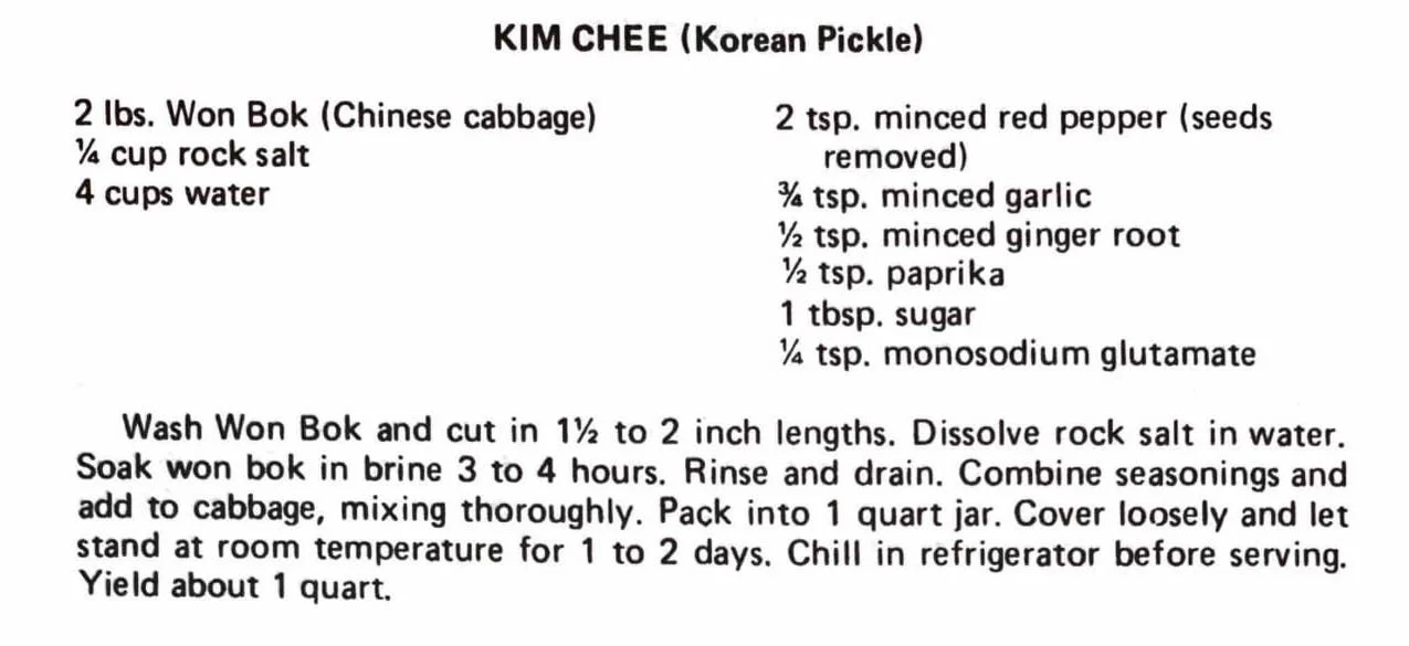 2 large Japanese daikon1-1/4 cup sugar1 cup water1/4 cup vinegar1 tsp. salt1 tsp. ajinomoto1/4 tsp. yellow coloring1 chill pepper (optional) Cut daikon into round pieces and soak in 1/4 cup salt overnight. Drain and pour water. Squeeze bard. Put daikon in the jar. In the meantime boil all the ingredients and when it cook pour…