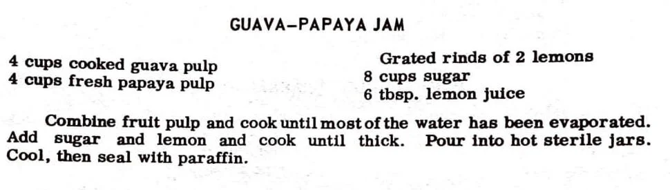 Combine fruit pulp and cook until most of the water has been evaporated. Add sugar and lemon and cook until thick. Pour into bot sterile Jars. Cool, then seal with paraffin.