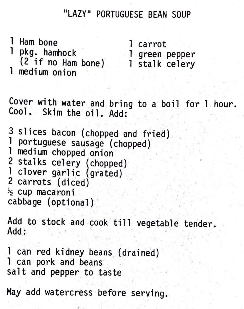 “Lazy” Portuguese Bean Soup