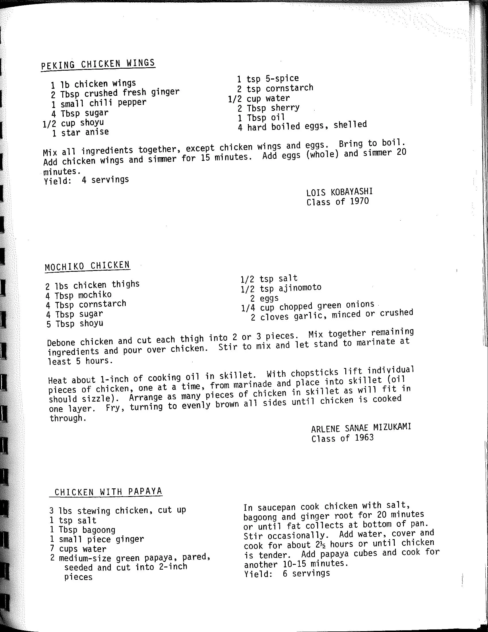 SERVES: 8 2 lb. belly pork 1 clove garlic 1 tsp. ginger 2 Tbsp. corn oil 2 blocks tofu 3 medium mushrooms 1 bunch mustard cabbage STOCK: 2 cups pork broth 2 Tbsp. shoyu 1 Tbsp. sugar 1 tsp. msg Parboil pork for 30 minutes and cut into 1/4 inch slices. Mince garlic and grate…