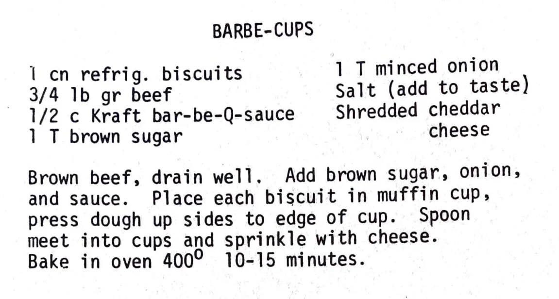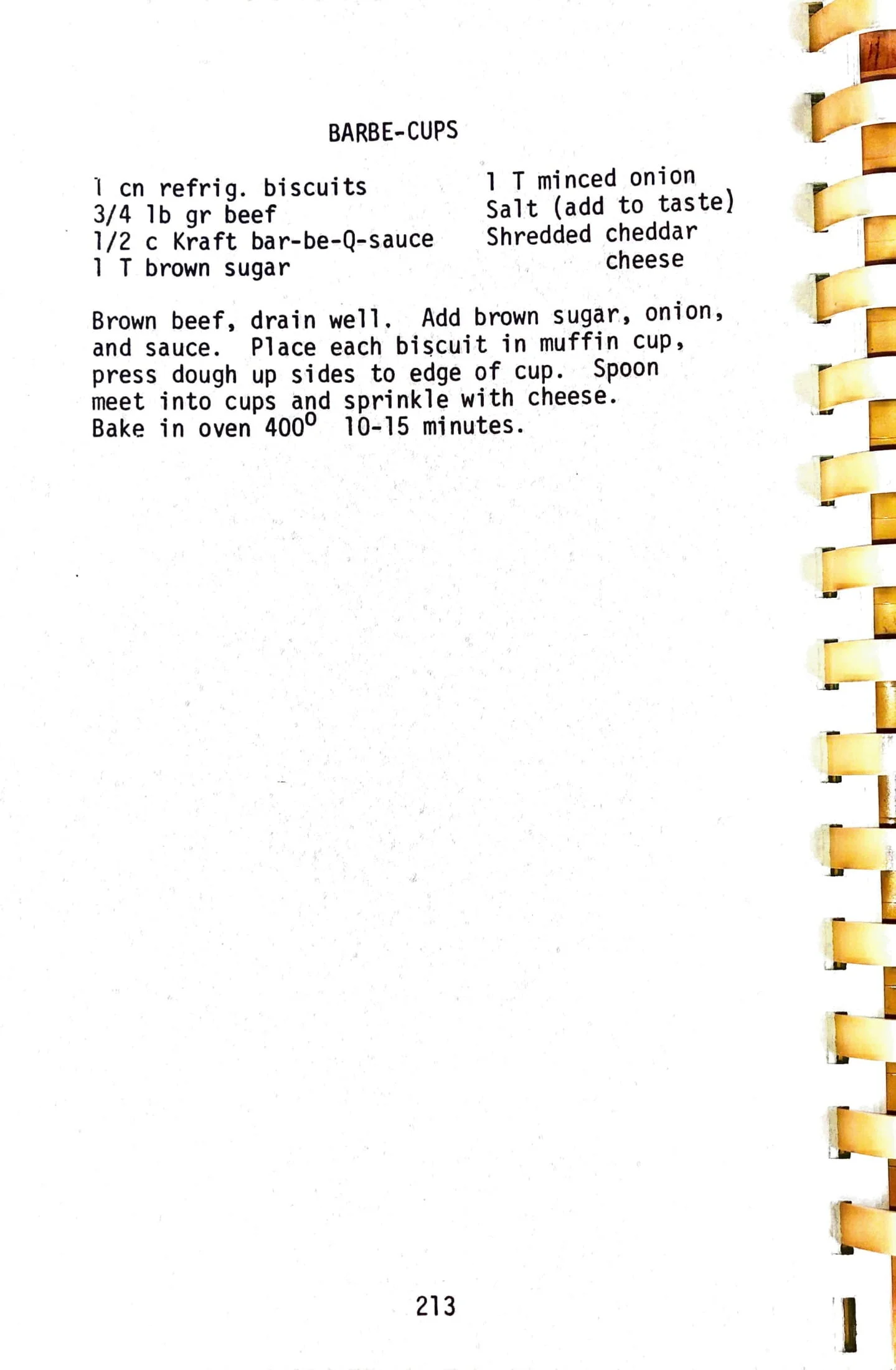 Brown beef, drain well. Add brown sugar, onion, and sauce. Place each biscuit in muffin cup, press dough up sides to edge of cup. Spoon meat into cups and sprinkle with cheese. Bake in 400° 10-15 minutes.