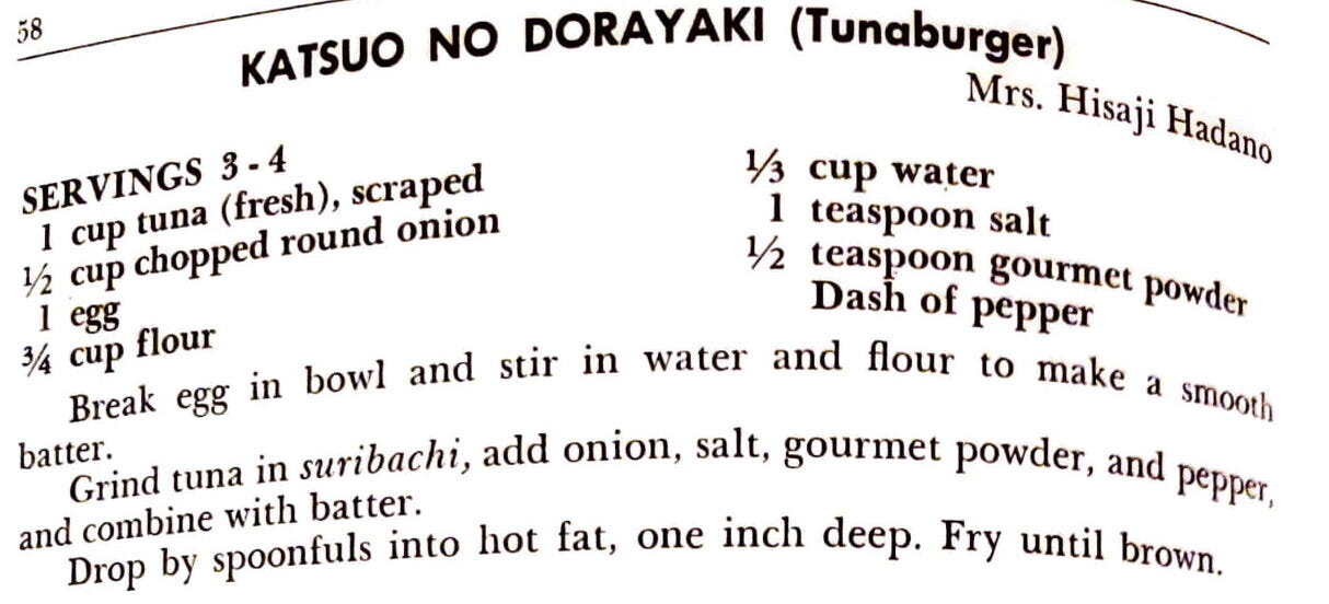 Grind tuna in suribachi, add onion, salt, gourmet powder, and pepper, and combine with batter.
