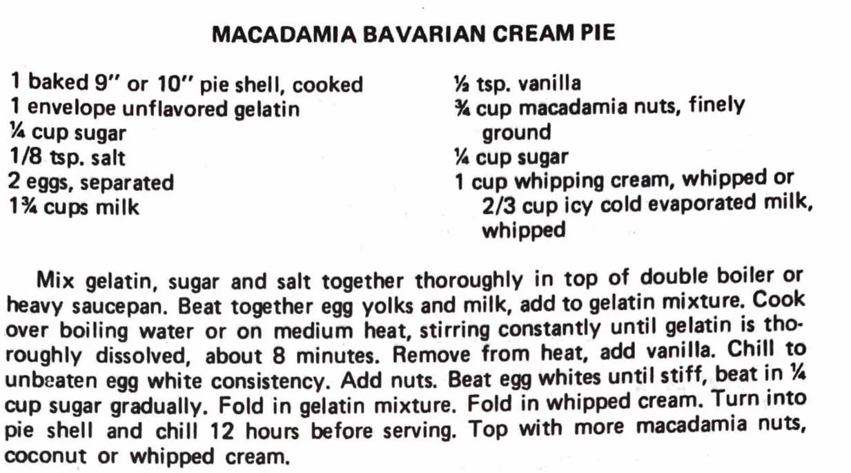 Macadamia Bavarian Cream Pie