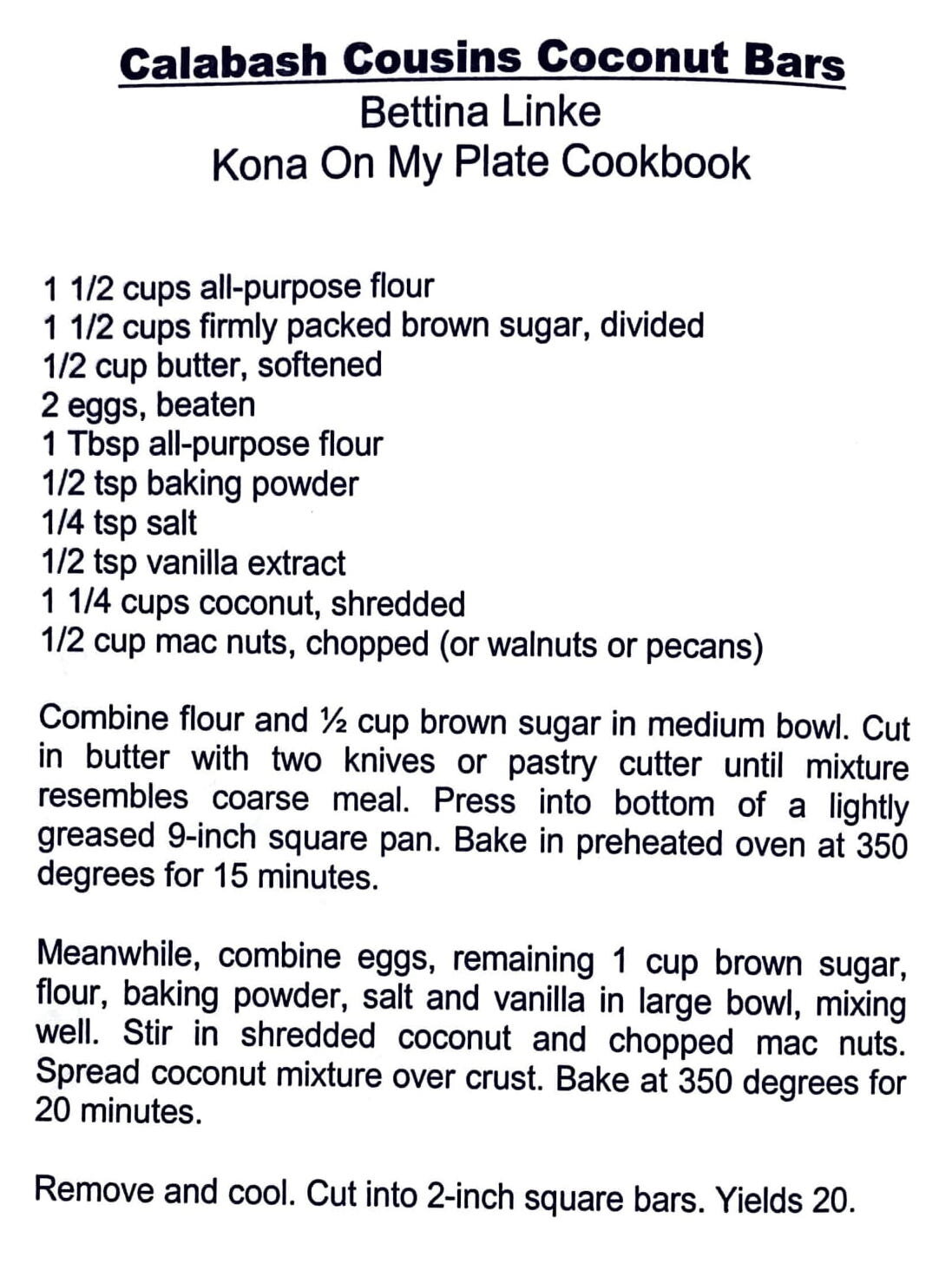 Calabash Cousins Coconut Bars