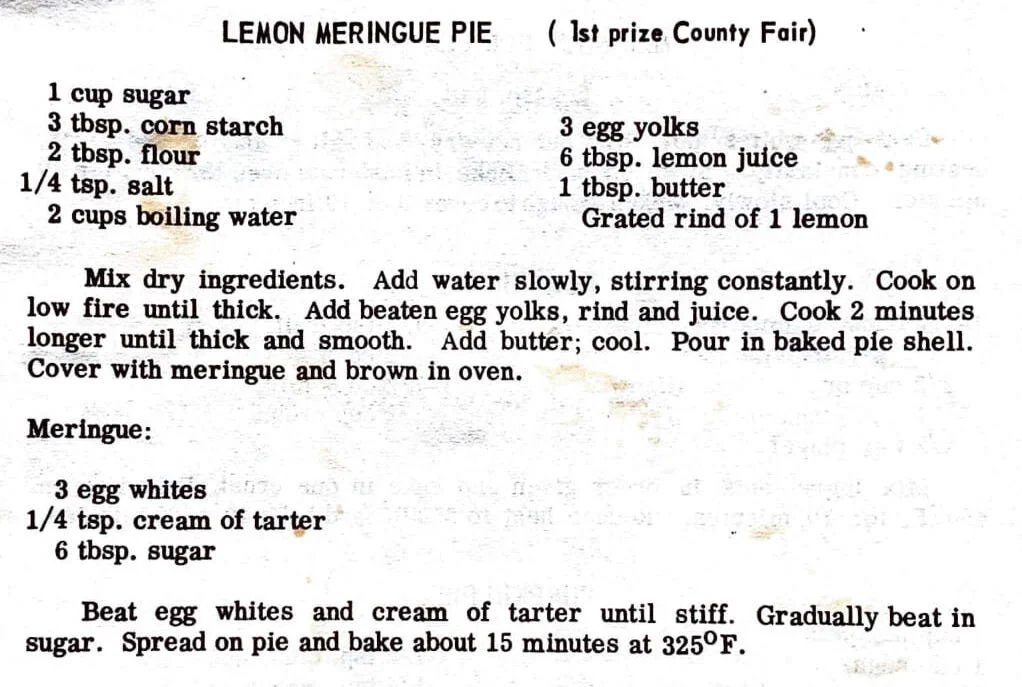 Beat egg whites and cream of tarter until stiff. Gradually beat in sugar. Spread on pie and bake about 15 minutes at 325 F.
