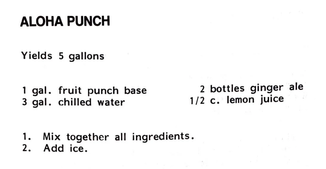 2 cans (46 oz.) pineapple juice 2 cans (12 oz.) frozen lemonade, thawed 2 cans (12 oz.) frozen guava juice, thawed Combine all ingredients in a punch bowl. Add ice. Makes 75 servings.