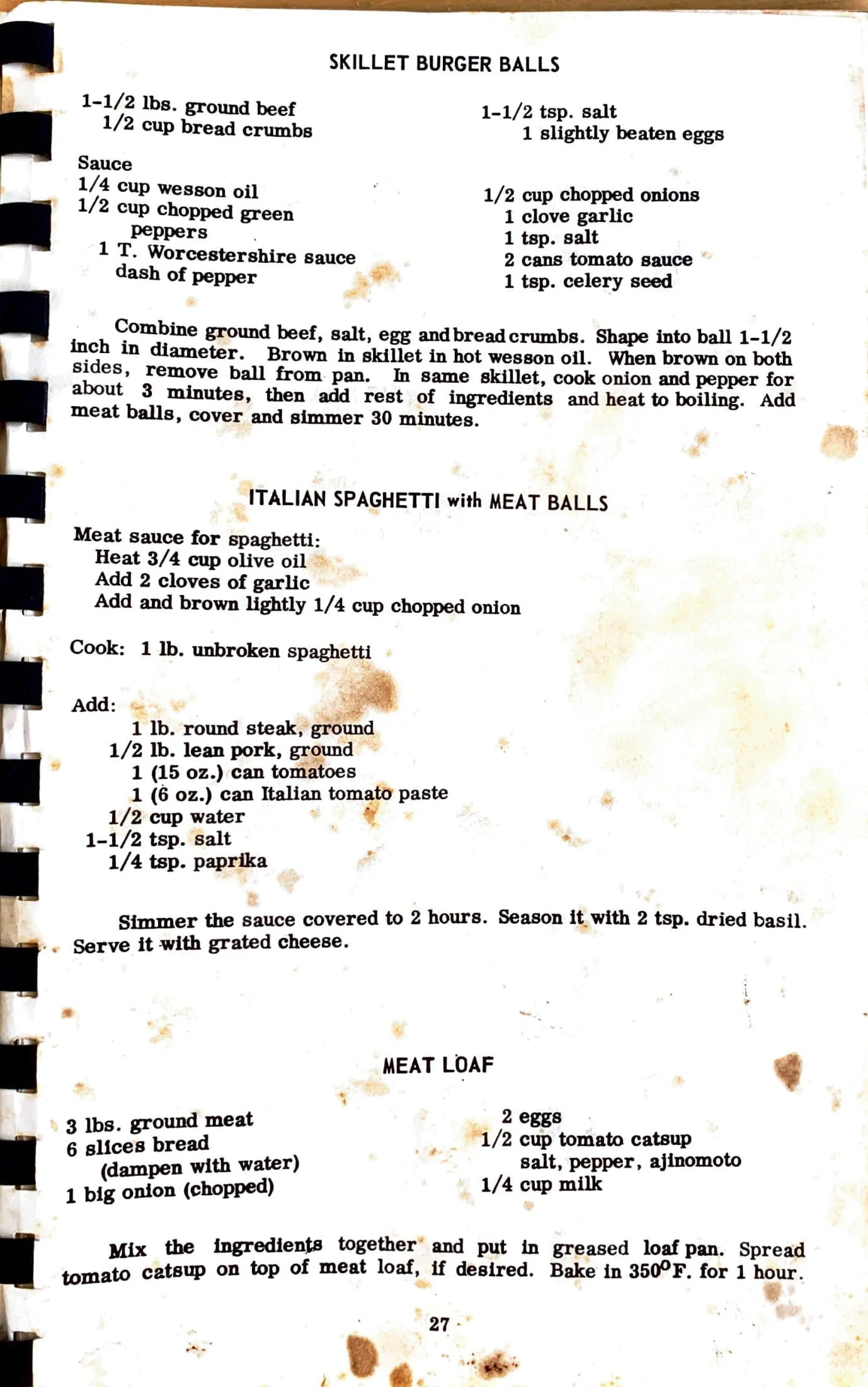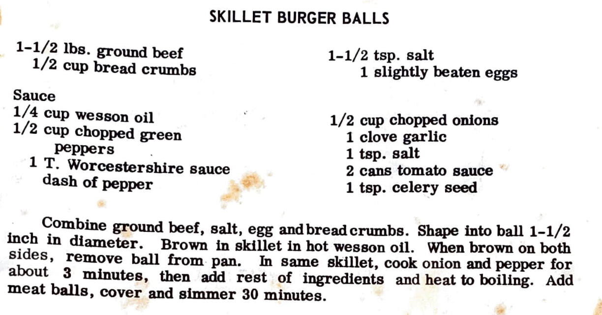 Combine ground beef, salt, egg and breadcrumbs. Shape into ball 1-1/2 inch in diameter. Brown in skillet in hot wesson oil. When brown on both sides, remove ball from pan. In same skillet, cook onion and pepper for about 3 minutes, then add rest of ingredients and heat to boiling. Add meat balls, cover and simmer 30 minutes.