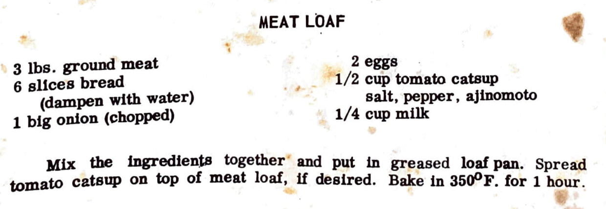 Mix the ingredients together and put in greased loaf pan. Spread tomato catsup on top of meat loaf, if desired. Bake ln 350°F. for 1 hour.