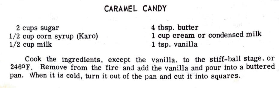 Cook the ingredients, except the vanilla. to the stiff-ball stage or 246 F. Remove from the fire and add the vanilla and pour into a buttered pan. When it is cold, turn it out of the pan and cut it into squares.